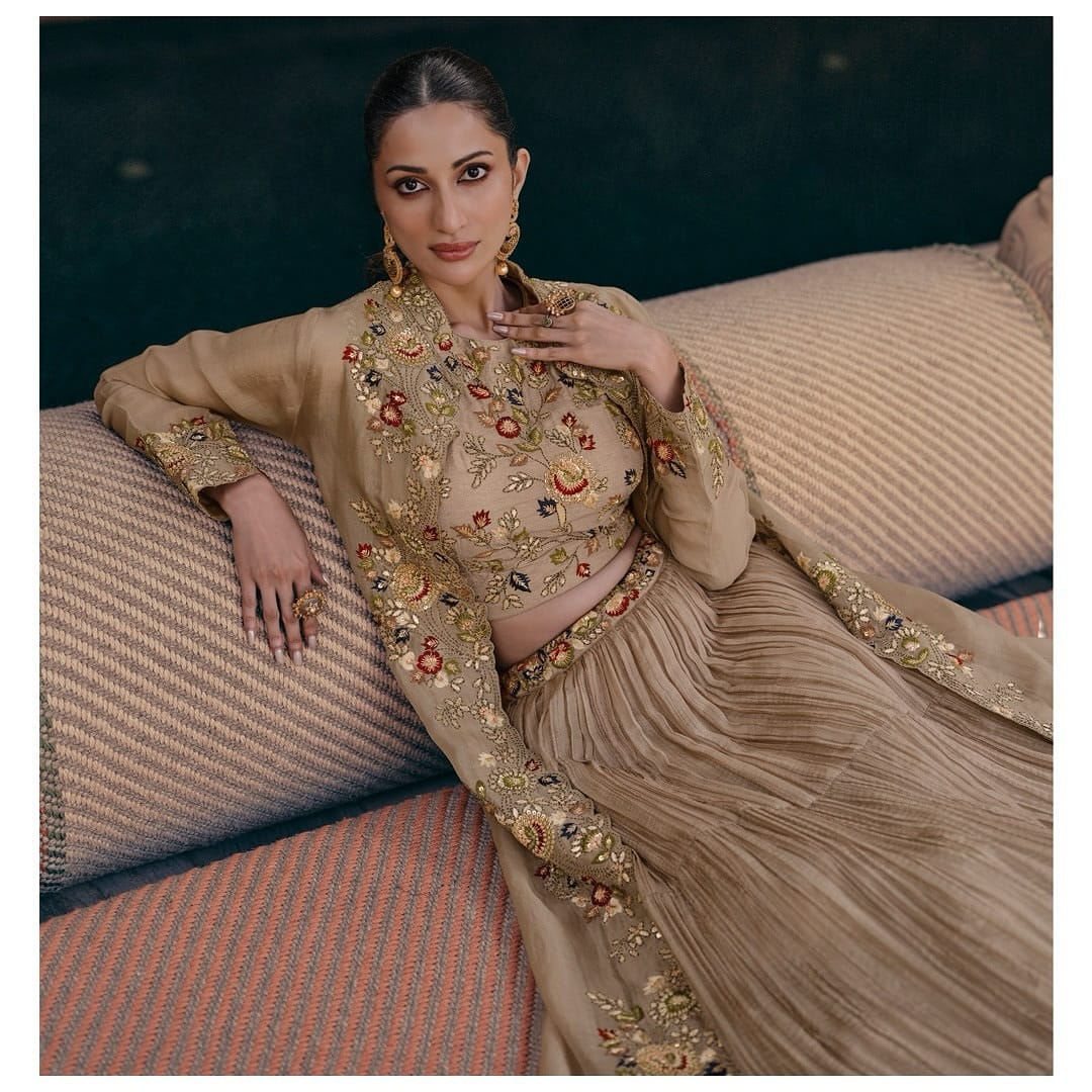 The beauty of the collection lies in the intricate zari, sequin, and threadwork that adorn each piece. Every stitch tells a story of delicate craftsmanship, enhancing the radiance of these garments. From the floral motifs to the shimmering borders, the embellishments shine without overpowering the natural elegance of the wearer.
